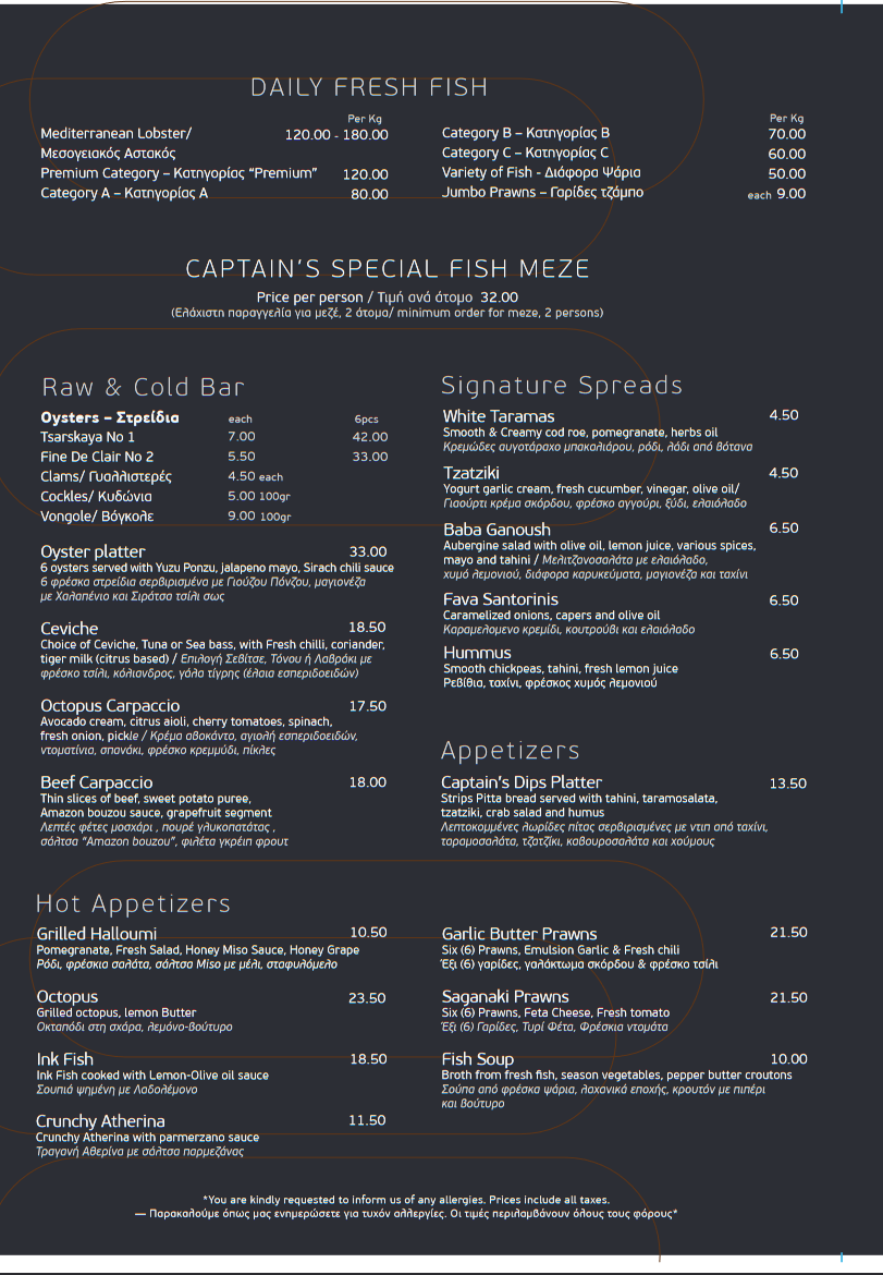 At Captain's Cabin - Lady's Mile Beach, exquisite seafood takes center stage, promising an unforgettable dining experience. Nestled in the picturesque Asomatos Lemesou, this beachside retreat serves a delightful array of fresh catches, including Sea Bass Fillet, Red Mullet, and Calamari Grilled, each dish meticulously crafted to showcase the flavors of the Mediterranean.